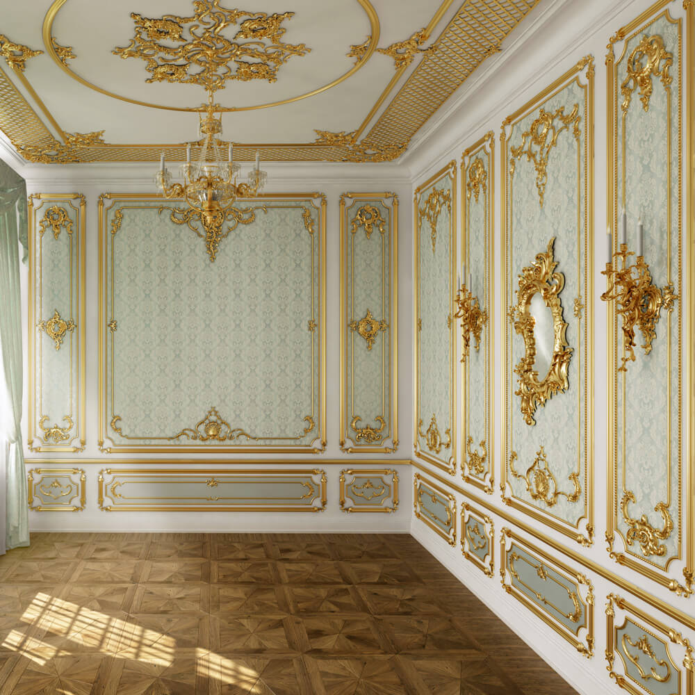 Рельеф — активный, объёмный. Толщина 18 мм при ширине 61 мм обеспечивает достаточную массу для теневого эффекта. При боковом или направленном освещении орнамент живёт: выпуклые части светятся, углубления уходят в тень. Это та самая игра светотени, которая делает классический резной декор визуально богатым.