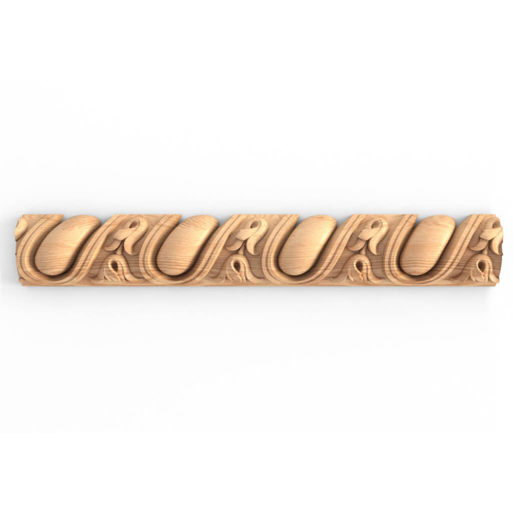 Погонаж из дерева K-039 —один из вариантов исполнения классической ионики. Декор, расположенный под наклоном, делает интерьер или мебель оригинальной и необычной. Достойно украсит кабинет, гостиную, библиотеку, кухню. Часто деревянный погонаж K-039 включают в объекты церковной тематики. Хорошо смотрится как составная часть фриза или самостоятельный элемент декора стен. Цветочный узор позволяет органично сочетать его с другими резными элементами.