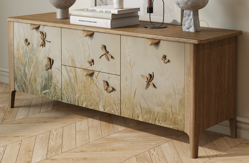Использование текстурированных материалов. Комбинируйте гладкие поверхности с текстурированными элементами, чтобы добавить комоду визуальную глубину и интерес. Например, используйте молдинги для создания рельефных узоров на фасадах.